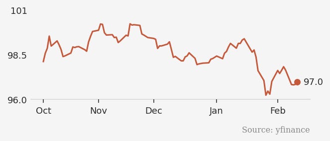 The DXY index at 96.96, down 0.7% (from previous session), not 2.2% this month, lends surface credibility to the thesis.